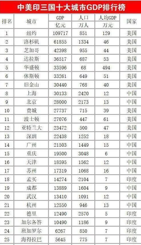 中国、美国和印度十大城市国内生产总值报纸:中国孟买排名第18,这两个城市榜上有名,注意,本文图片来自网络!