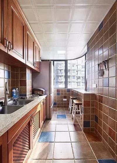 通过小阳台与厨房相连,然后把空间变成休闲区,使厨房空间不再像做饭那样简单,更有情调