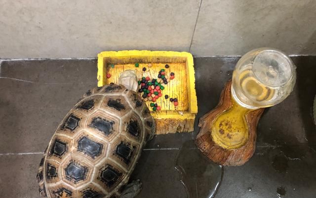吃完樊凡后,他骑在饭碗上,以喝水为主。为什么,他害怕铲粪便和抢你的龟粮。他还把没吃的藏了起来~
