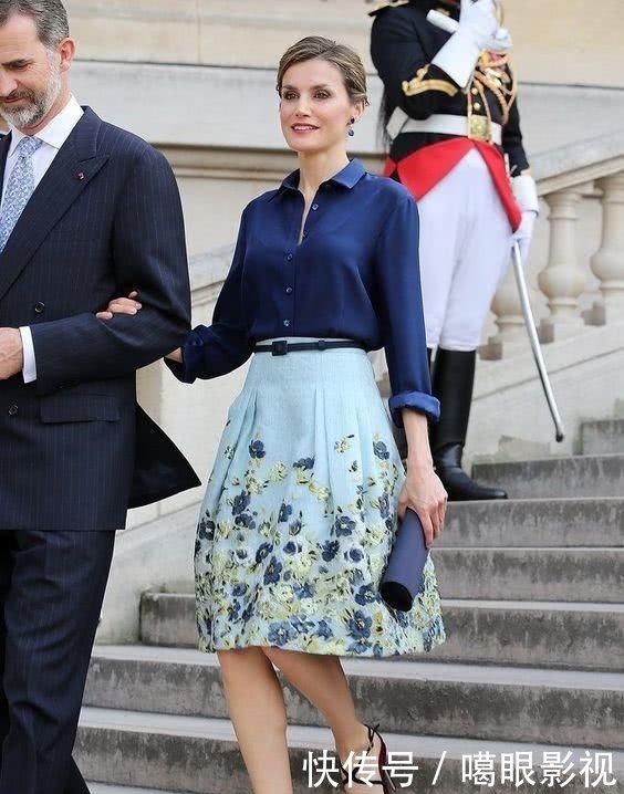莱蒂齐亚女王穿着蓝色裙子和蓝色细高跟鞋。同样的颜色会使外观更加和谐。女王穿着高跟鞋,高挑而优雅。鞋子也是穿着的重要部分。鞋子的风格也会影响形象的美感和气质。女王穿着细高跟鞋,身材修长,气质高贵典雅。然而,当女王被迫出现在家里时,她的风格发生了变化,因为她选择了一双平底鞋,变得朴素而务实。