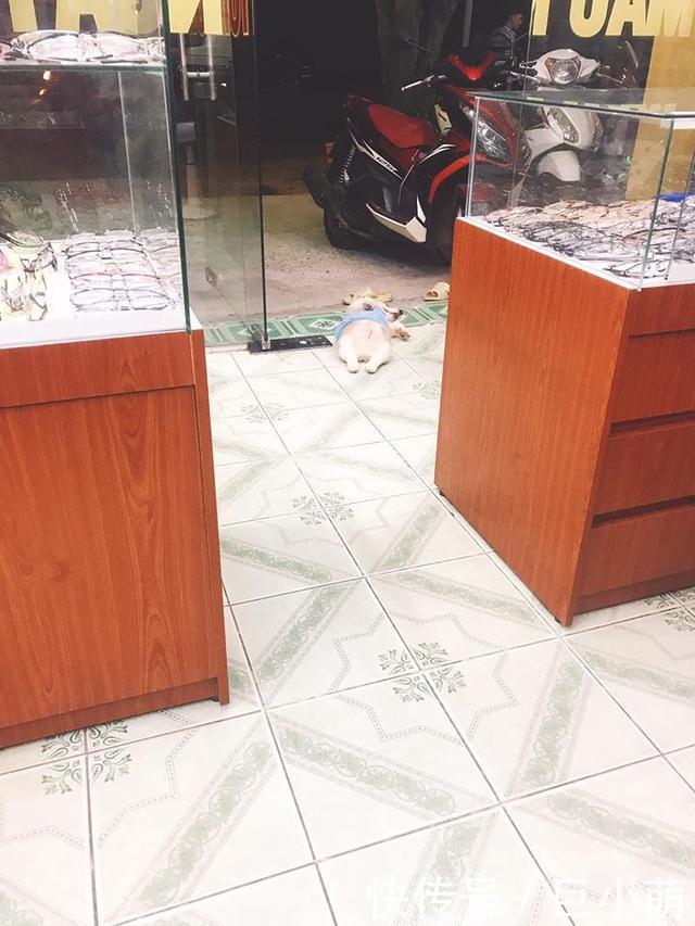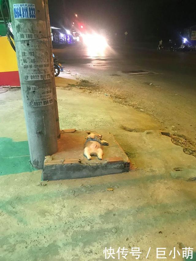 即使在商店前面的电线杆下,交通也非常复杂和嘈杂,Candy可以高高兴兴地睡觉。
