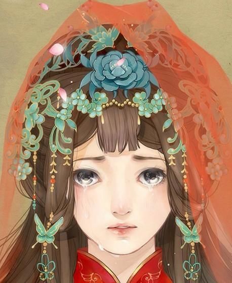金牛座女孩温柔顺从,最适合做图片中的头饰。它也是和婚纱一样的头纱,但是它不是那么轻和薄。相反,它使用刺绣,在头纱上有一个黄色的花图案,这使女人看起来虚弱和可怜。照片中,她头戴凤冠,身穿官服,却在这样的日子里流泪。她看上去楚楚可怜,让人感到苦恼。