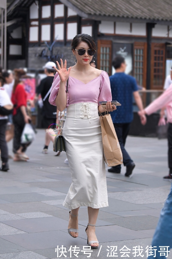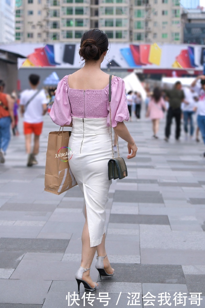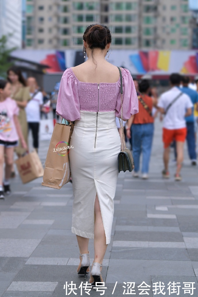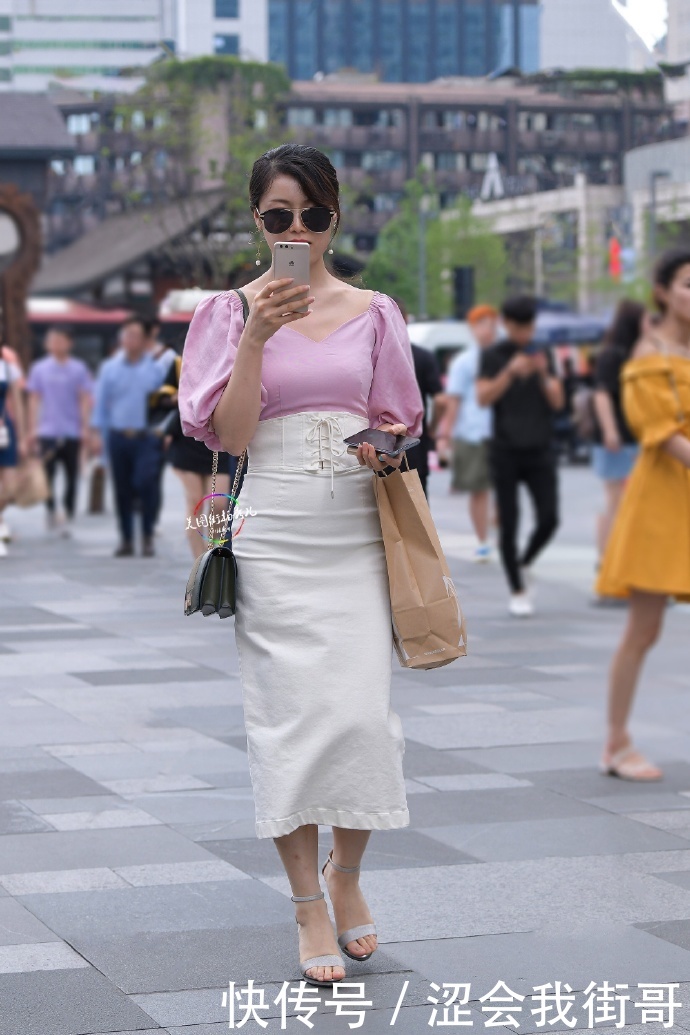街头摄影中的小妹:一个美丽的年轻女子在玩照片。