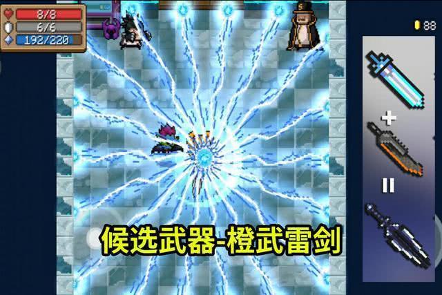 雷剑是由冰霜之剑和火焰之剑融合而成的武器。自从它出现在原气地牢里,它就成为了原气骑士地牢里的第一件武器!虽然有些光污染可能会影响玩家的游戏体验,但毫无疑问玩家有能力杀死地下城中的小怪物和boss,尤其是面对boss曼陀罗魔花,橙色武器雷剑拥有双倍输出的闪电属性伤害和近战武器伤害,可以直接杀死