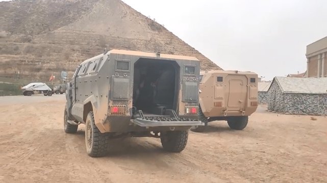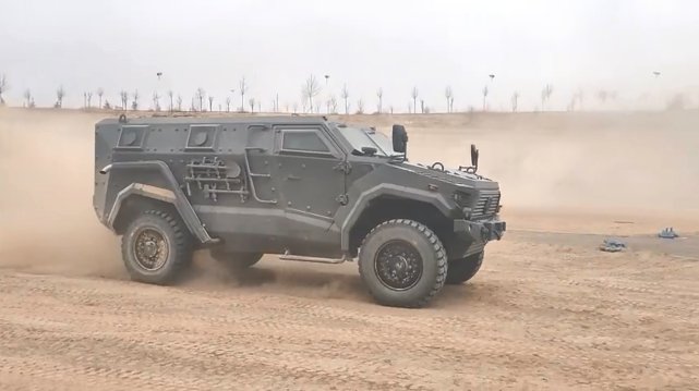 这款“凶猛战士”第三代保护变形车仍然采用标准轴距的4x4配置车体两侧还设有四个带射击孔的观察窗。