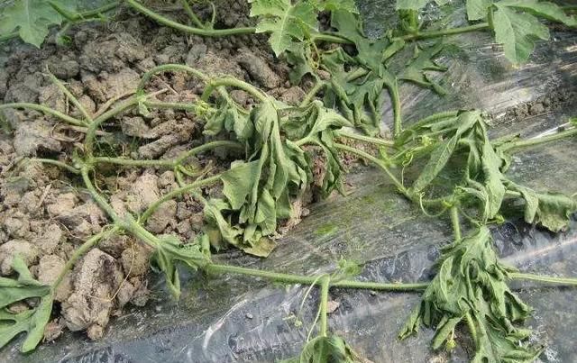 黄瓜枯萎病茎和卷须纵向切割,维管束变成褐色西红柿通常在木质部变黑西瓜枯萎的叶子从根部向上枯萎,在根部腐烂,变成褐色的维管束。