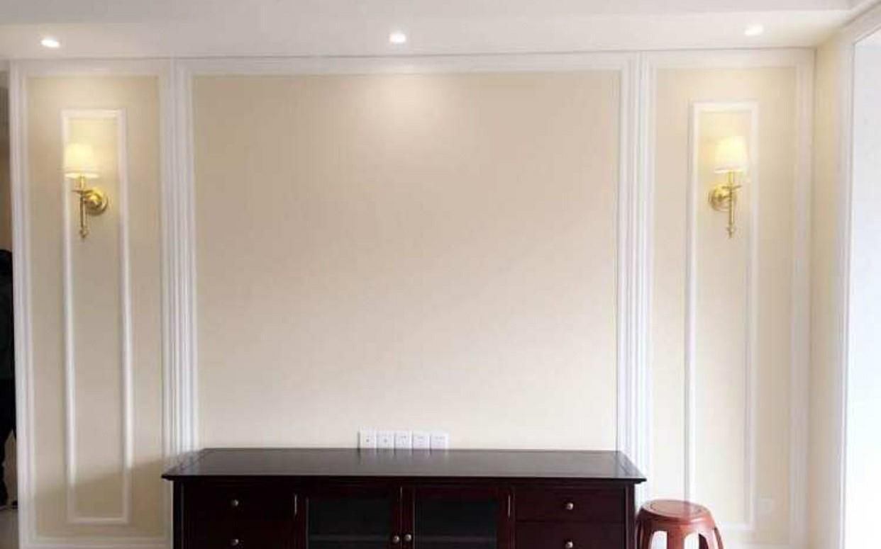 为了显得空间不会那么单调,沙发也贴满了石膏线条作为背景墙,中间的边框稍大,搭配得很好。
