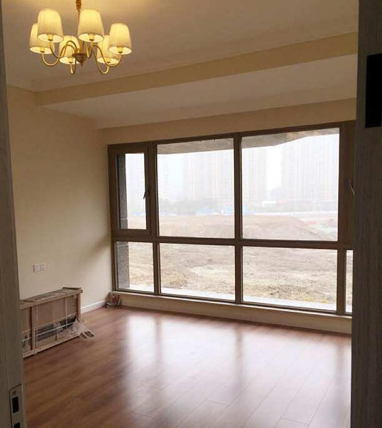 客厅背景墙配有电视柜,视觉上更大气,电视柜能提供很好的储物空间,不错,家人对质量也很满意。然而,电视机还没有搬进来。让我们通风一会儿,以去除气味。