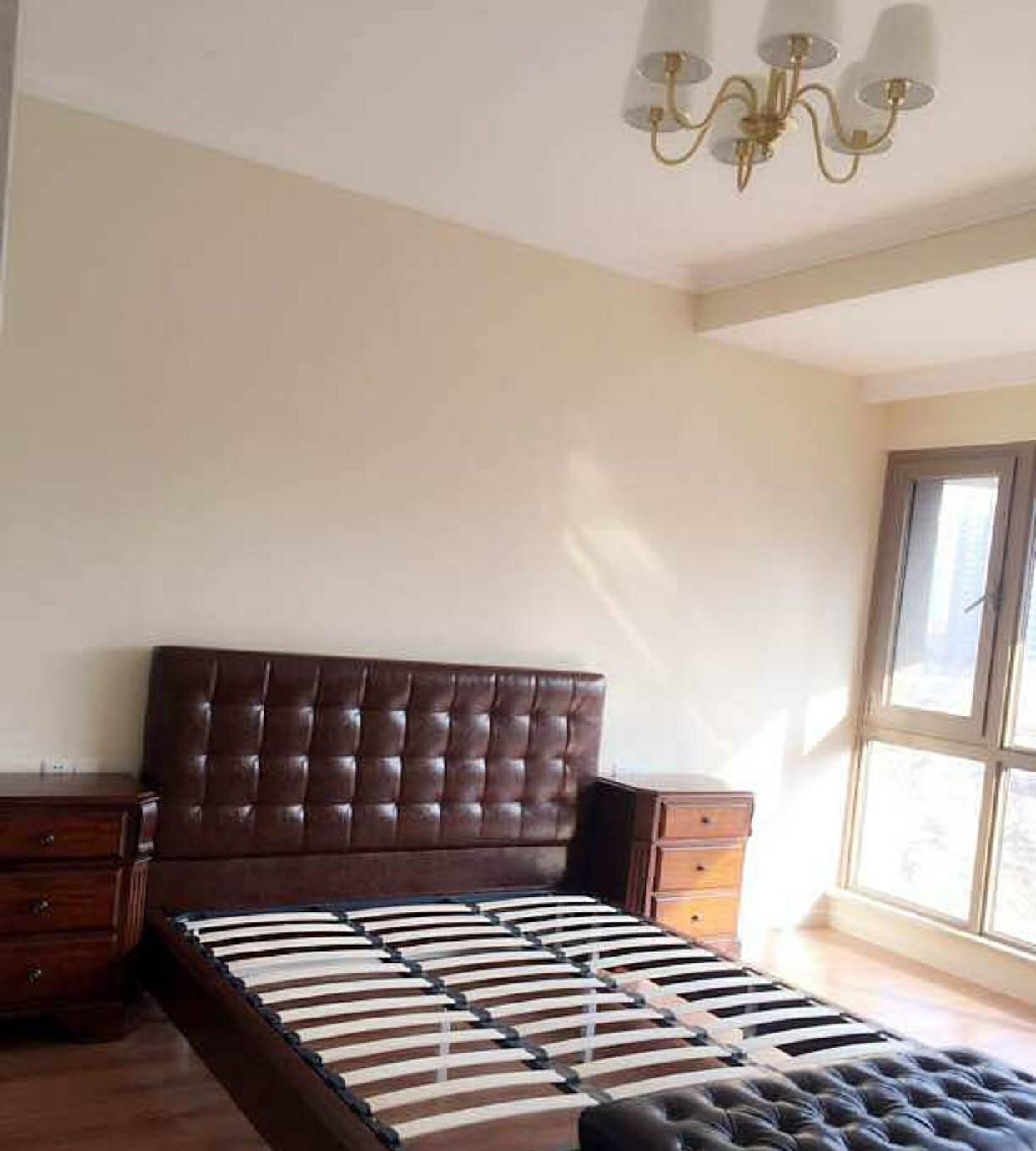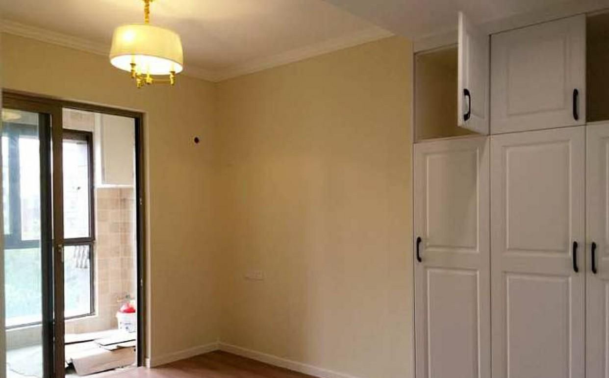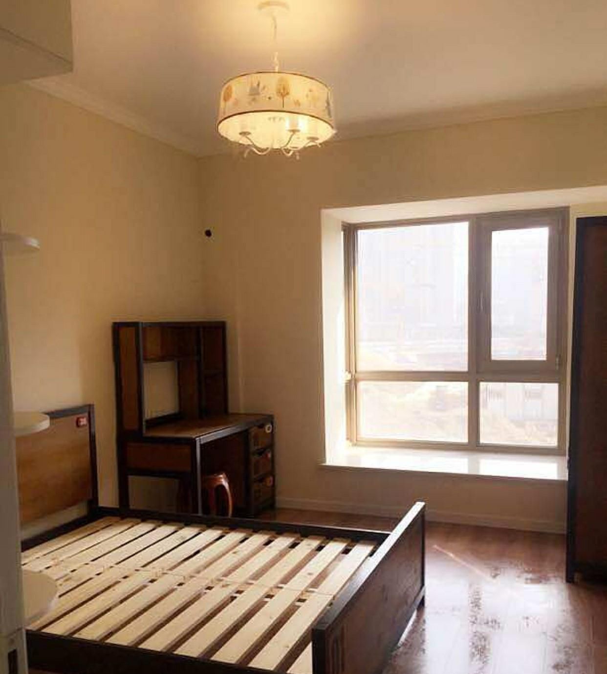 配有一张实木大床,旁边有一个书桌柜,这将非常方便主人家的孩子将来做作业或看书。此外,还有一个浮动窗口,可以方便地用来坐或躺。灯光还不错吧