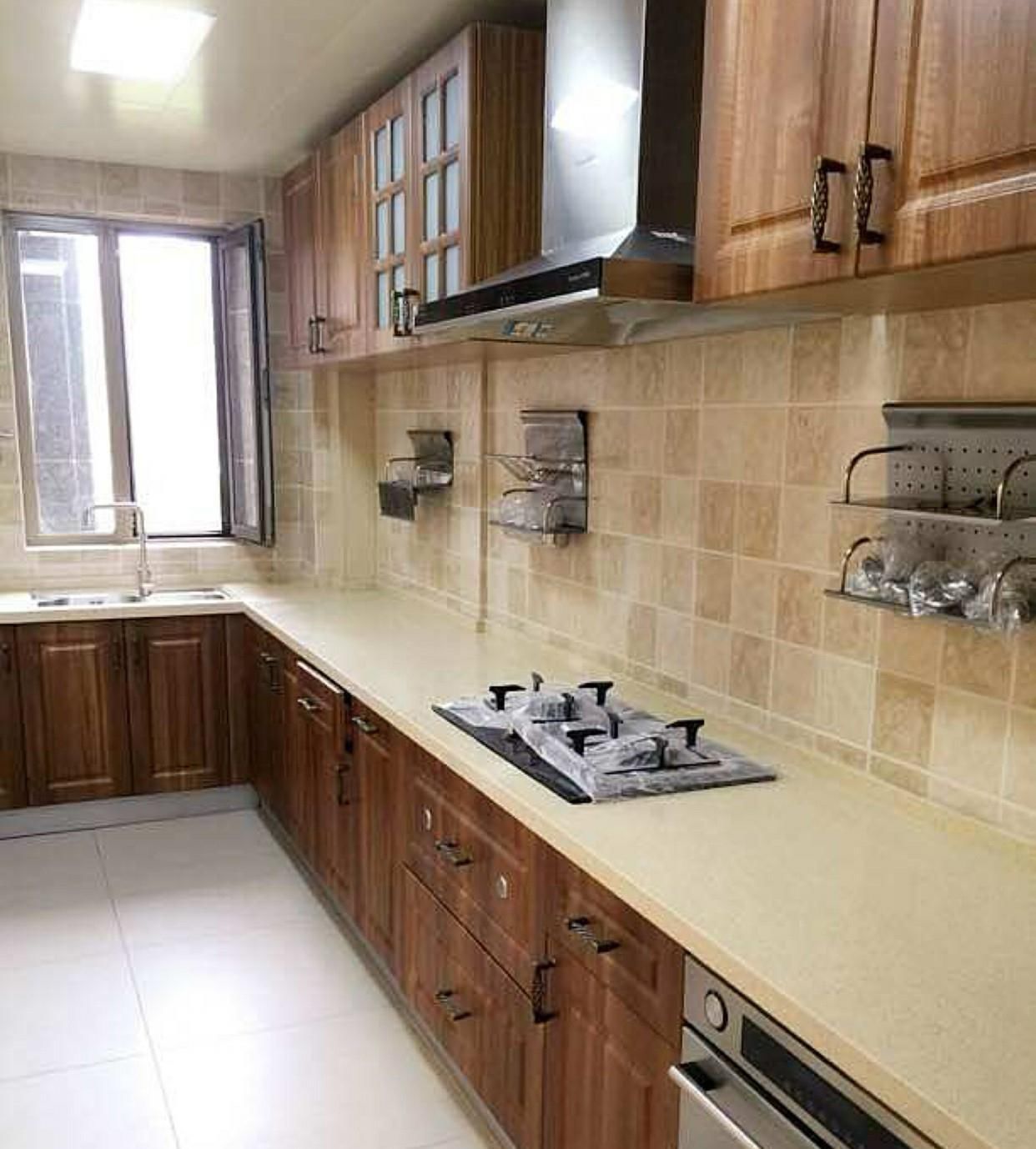 的厨房定制了“l”形橱柜,可以充分利用整个厨房空间。水槽远离煤气炉,中间位置可作为切割区,形成“洗、切、炸”的顺序。此外,洗碗机已经安装,这使得它更方便使用和减少家务劳动。安装了石英台面,非常耐脏。一些架子安装在墙上,可以很容易地容纳小物品,防止厨房物品随意摆放。