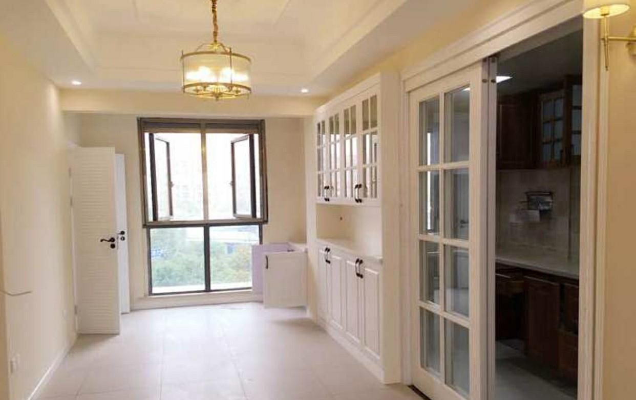 配有白色实木推拉门。在厨房里可以看到透明的玻璃,它在视觉上是透明的,不会让人在空间里感到压抑