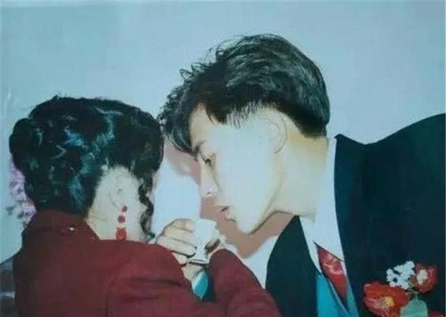 第二个网民展示了他父母的结婚照,展示了他母亲的后背和他的脸。在照片中,父亲微微低下头,非常深情而严肃,立体深度的五官,颜色值太高了!