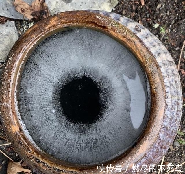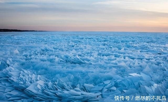 冰晶冲出湖面。巴基斯坦洪水爆发时,形成了一轮不同颜色的冰叶片阵列