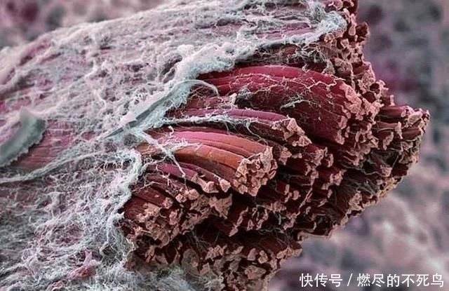 显微镜下生长人体肌肉组织,就像日落时无数的橡皮筋
