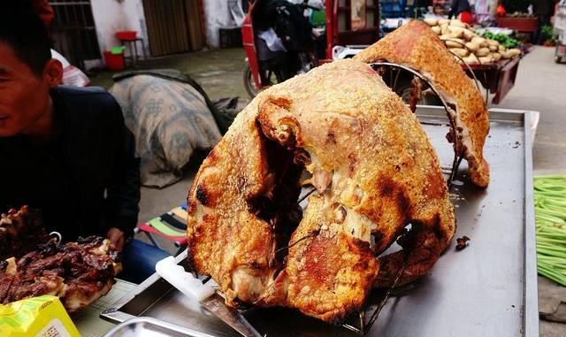 烤香脆猪皮发出吱吱嘎嘎的声音,闻起来像烤肉,吸引村民停下来观看交易会。这种烤肉最近在这个城市很受欢迎。整只带皮的猪用各种香料腌制来品尝。稍微干燥后,在烤箱中烘烤,直到皮变脆。因此,它的名字让人一听到就流口水。脆皮烤猪