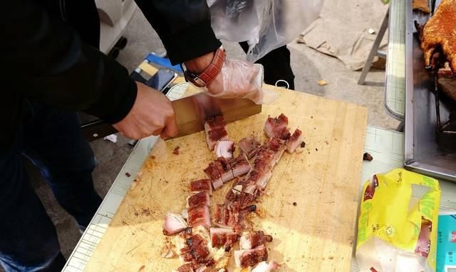 199岁的年轻人切下一把刀来烤猪肉时,他都会发出嘎吱嘎吱的声音,这让他想挤在一起来缓解他的渴望。这个年轻人的家庭在这个城市的家里有一家烤猪的商店。今天,他和他的儿媳开车去参加这个大型聚会,帮助这个家庭做生意。香酥烤猪在烘烤前已经腌制过,有风味和咸味,购买后无需单独调味。捏一块尝一尝。入口的皮肤又焦又脆。瘦肉有腌肉的独特风味。如果配上啤酒会更美味。年轻人还没有到微笑或说话的年龄。他看起来脚踏实地。每个顾客都拿出足够的秤来买烤猪肉,并在找钱的时候擦掉多余的零钱。