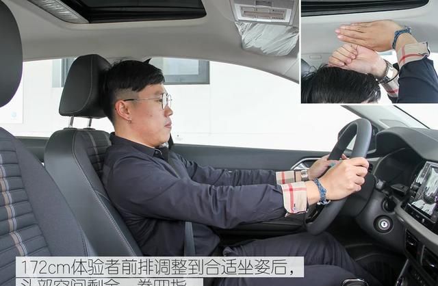 新款朗逸尺寸加长后,空间性能好。图中所示的172厘米用户实际测量,前排和后排有很好的剩余空间。