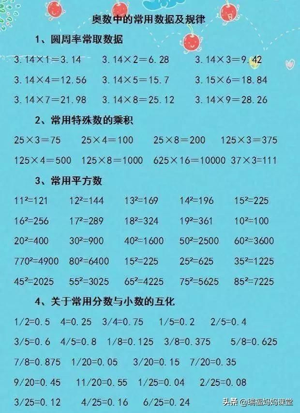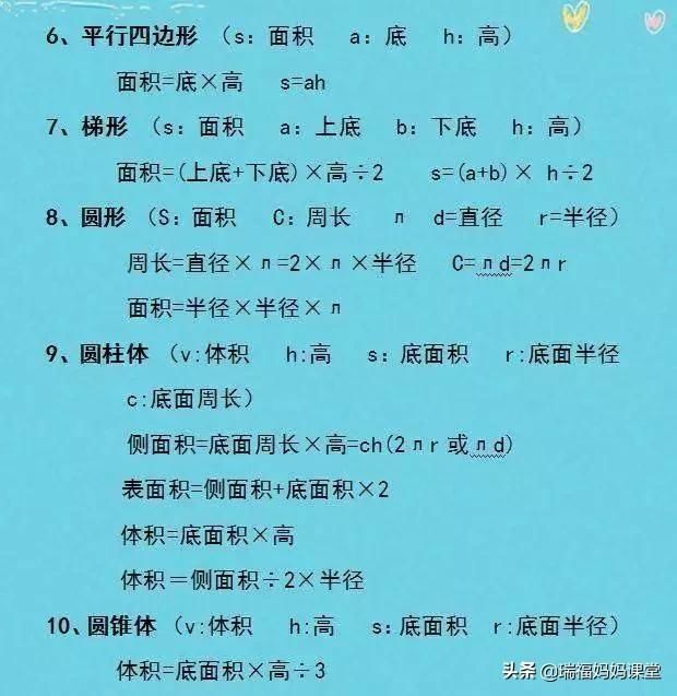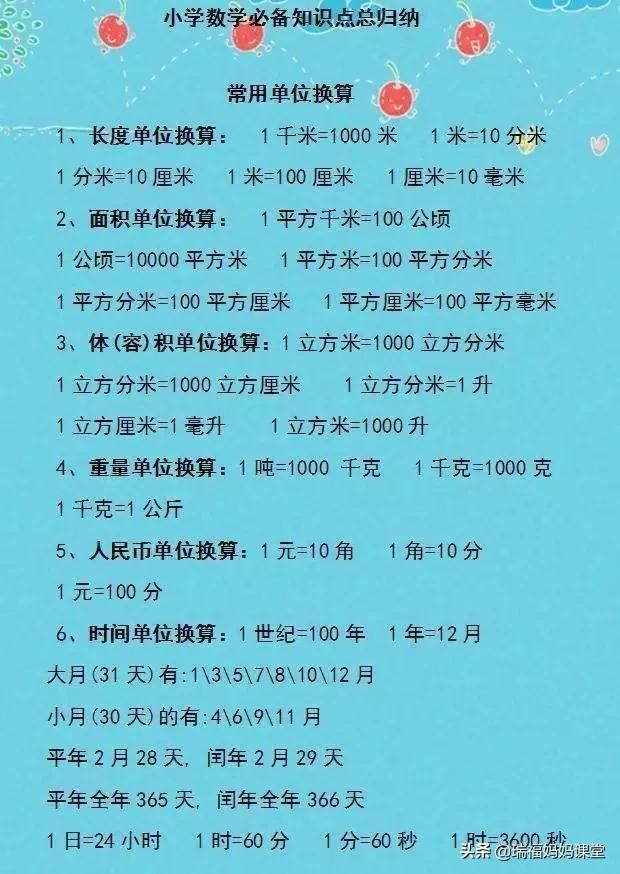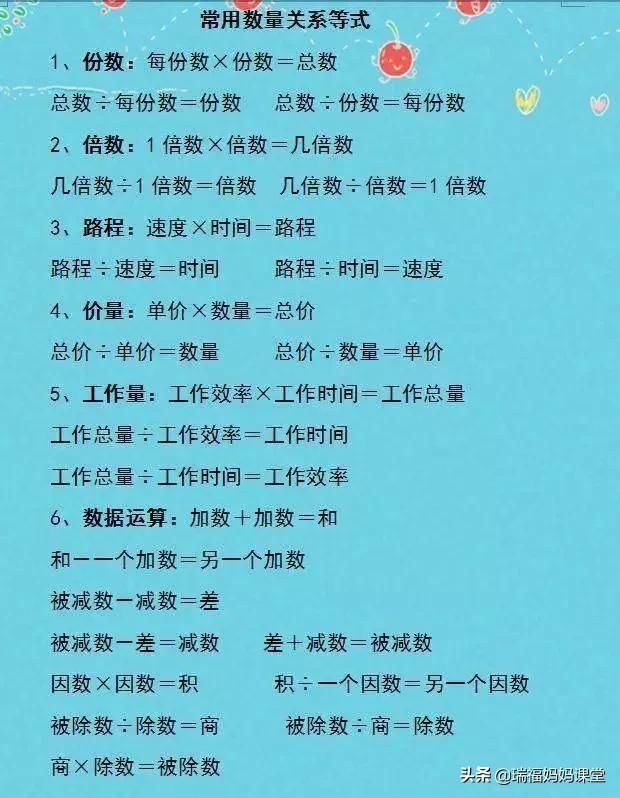 我带给家长的是小学数学公式学习,家长可以收集和打印。的相关文章