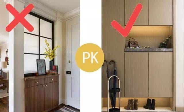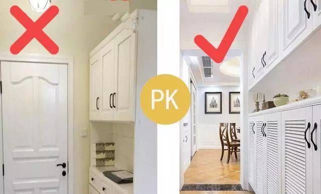 不要害怕穿过玄关做鞋柜顶部太沉闷,否则你将来会不得不打扫,而且鞋柜顶部空间的卫生非常麻烦。