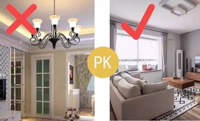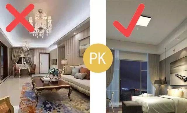 不要选择笨重的水晶灯来吸引人们的目光。简易吸顶灯使用方便,不会降低楼层高度
