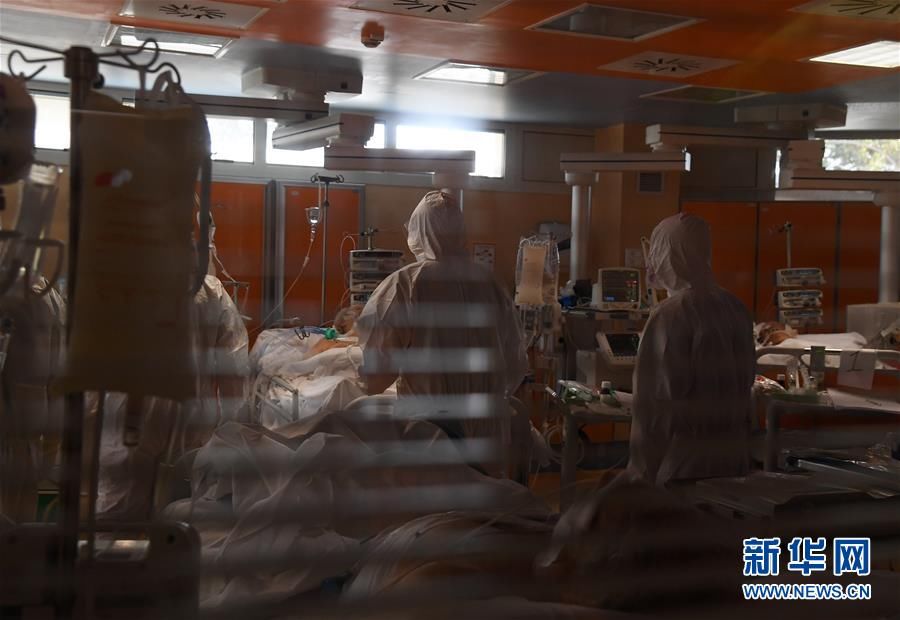 3年25日,医务人员在意大利罗马卡萨帕洛临床研究所的重症监护室工作,该所负责治疗新发肺炎患者。新华社(阿尔贝托内衣)