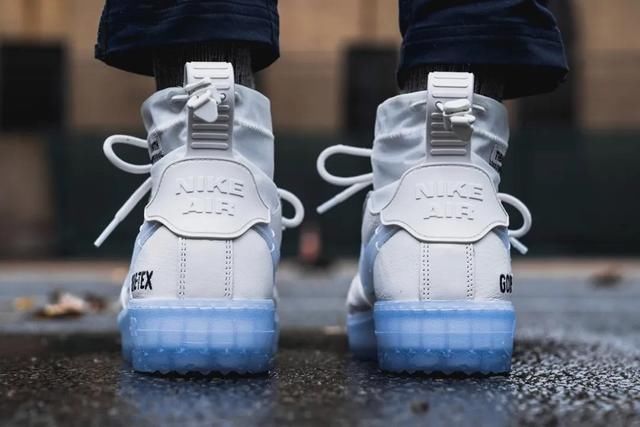 洁净的纯白色鞋身,融入简单的解构元素,半透明浅蓝色Swoosh和水晶大底相互呼应,GORE-TEX高筒防水衬里,即使不是暴雨也没问题!设计、色彩价值和功能都在,当然目前的价格有点太贵了。超过