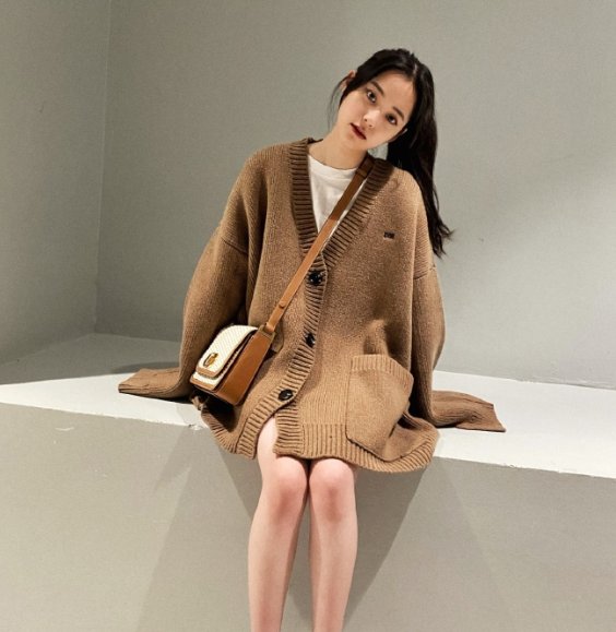 是一件又长又松的毛衣。这件毛衣的颜色相对低调而简单。它是棕色的。她的皮肤更白更红,充满了少女的感觉。但是,因为毛衣是大号的,她没有太多复杂的搭配。可以看出她穿着一件白色的t恤。这是她全部的衣服。我曾穿过一件毛衣作为裙子,但没人试过。我穿了一件裙子样式的长毛衣,这不是不伦不类的,而是非常个人化的,并且展示了我美丽的腿。