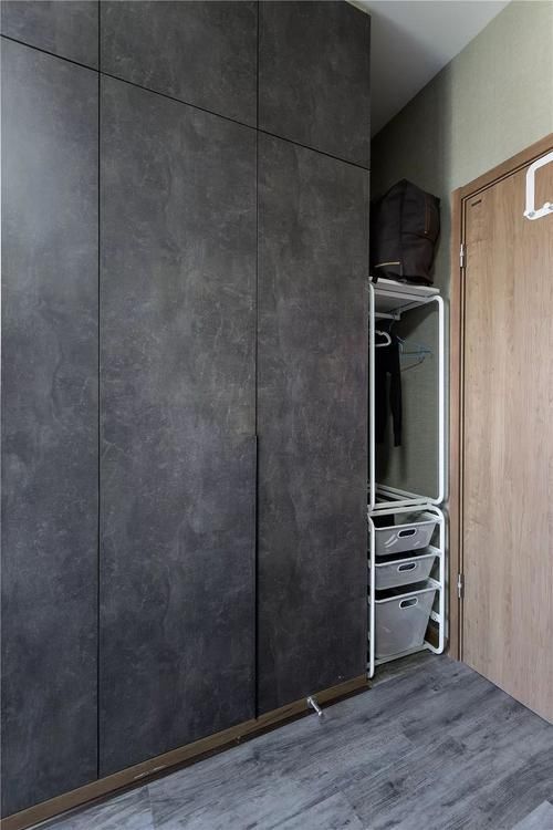 ▲充分利用门后空间,留出足够的存储空间。高档灰色质感的门简单时尚。