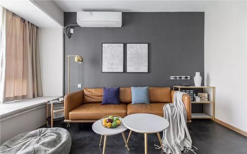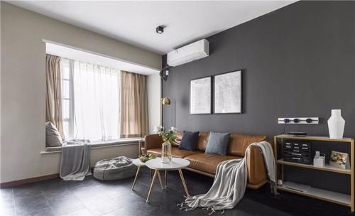 ▲客厅以黑白灰色为主,搭配质感饱满的棕色真皮沙发,时尚迷人。飘窗的设计营造了一种休闲慵懒的氛围。