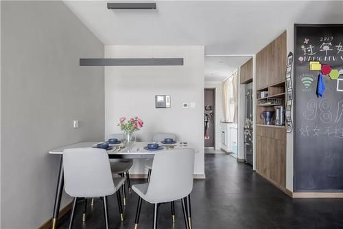 ▲餐具柜另一侧的墙上还设计了一面黑板墙,结合精致的小饰品,根据季节或心情描绘出一幅充满爱意的画面。它是放松的、浪漫的和情绪化的。