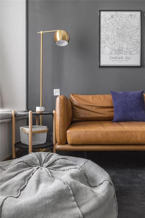 ▲沙发一侧有木制小边和黄铜落地灯,装饰精美,气质高贵