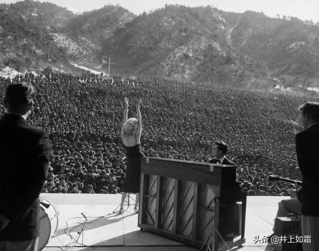 1991954年,玛丽莲·梦露在韩国为数千名士兵表演。