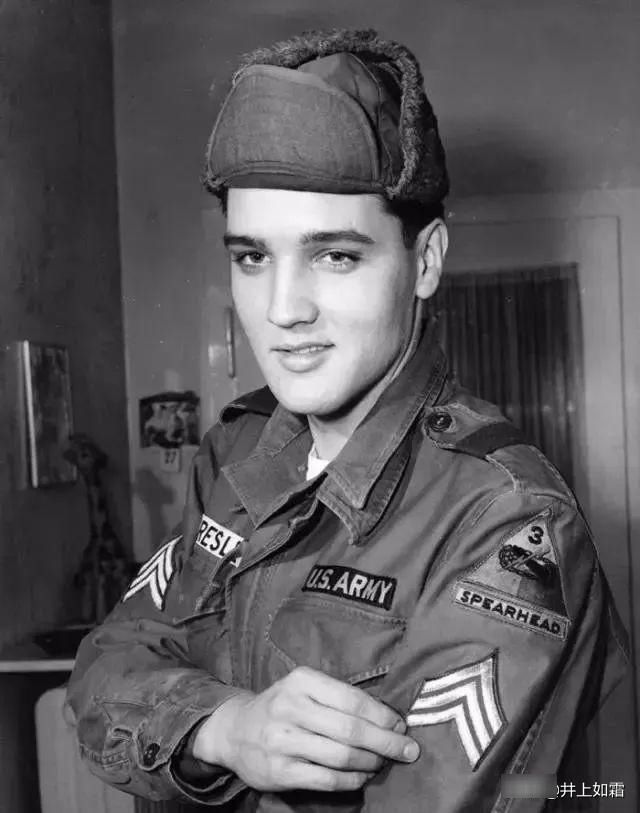 猫王穿着军装,一脸青春