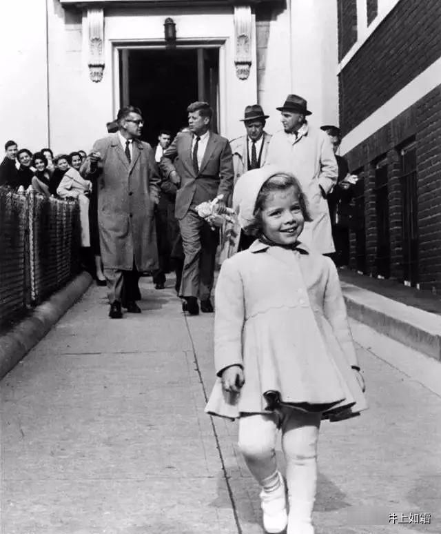 1991963年,6岁的卡罗琳·肯尼迪兴高采烈地走在前面,肯尼迪总统手里拿着她的洋娃娃~。