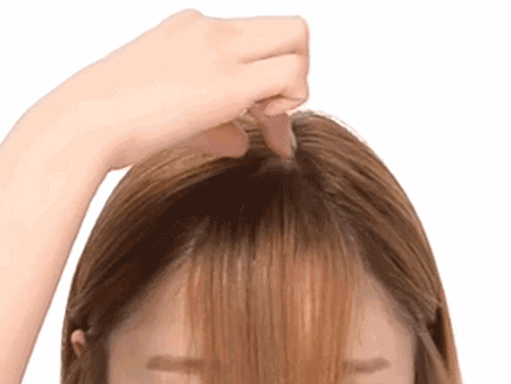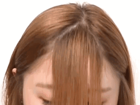 步骤1:首先,把头发梳到前面。前面说整齐的刘海不应该太厚,所以记得不要把后面的头发梳到前面太多。