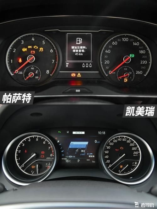 帕萨特仪表板采用传统的双环设计,看起来比较老式,而凯美瑞仪表板采用双筒设计,配有7英寸液晶显示屏,整体上比帕萨特年轻。