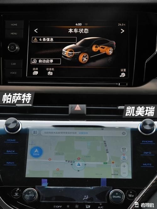 的触摸屏是嵌入式的,帕萨特有一个8英寸的屏幕,而凯美瑞有9英寸两辆车都配有全球定位系统导航系统、蓝牙/车载电话、车载电话和语音识别控制系统。帕萨特多卡布雷就