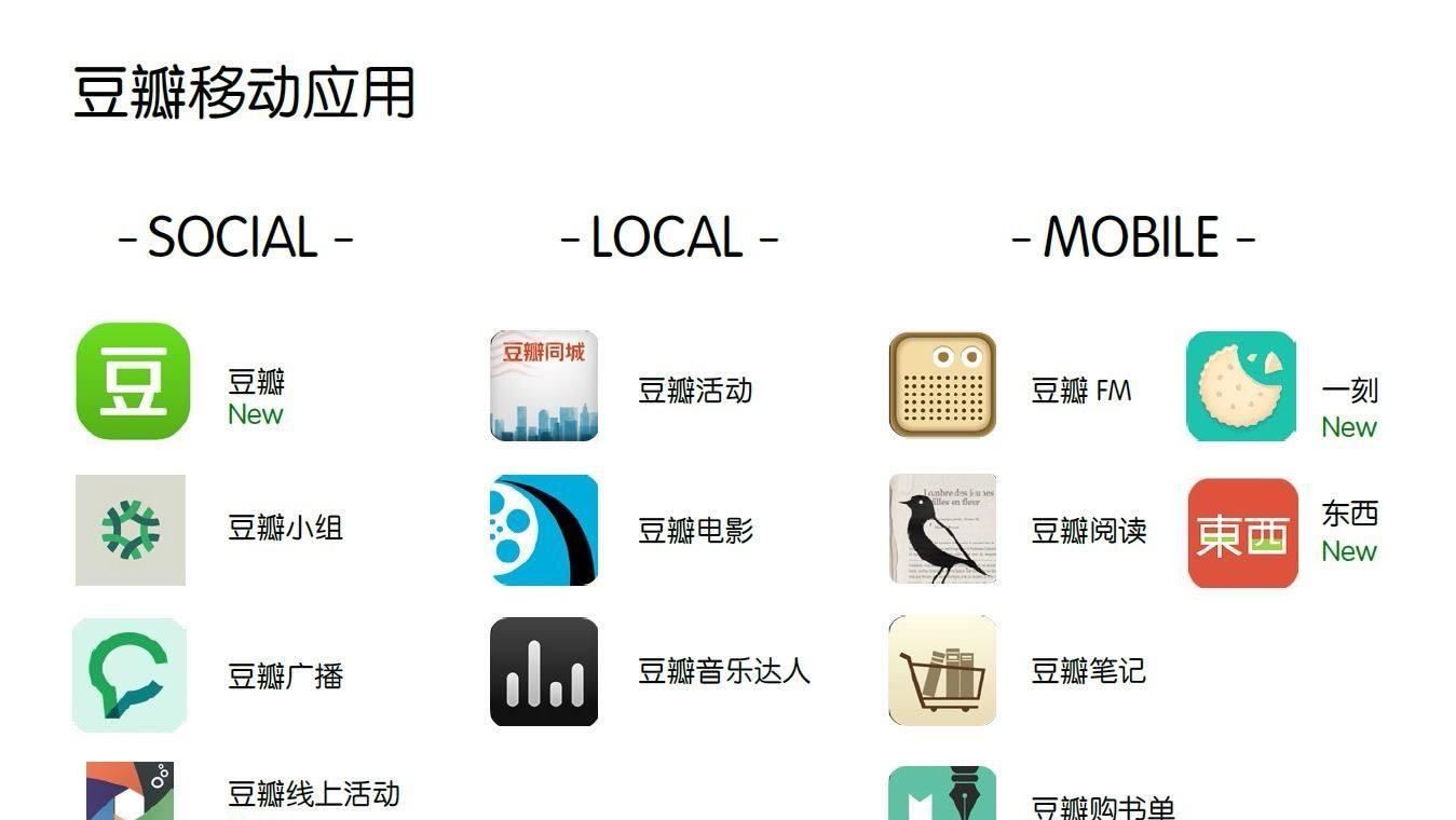 2012年是互联网从个人电脑转向移动设备的一年。豆瓣手机首次推出10多个应用,包括豆瓣调频、豆瓣阅读、豆瓣笔记、豆瓣电影、豆瓣集团、豆瓣城、在线活动等。尽管为每个频道制作独立应用的做法有助于提升垂直场景的体验,但这与用户习惯于在超级应用中完成任务的趋势不符。