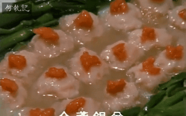 鱼肚镶嵌虾酱,蟹黄装饰,被称为“万寿菊银盆”