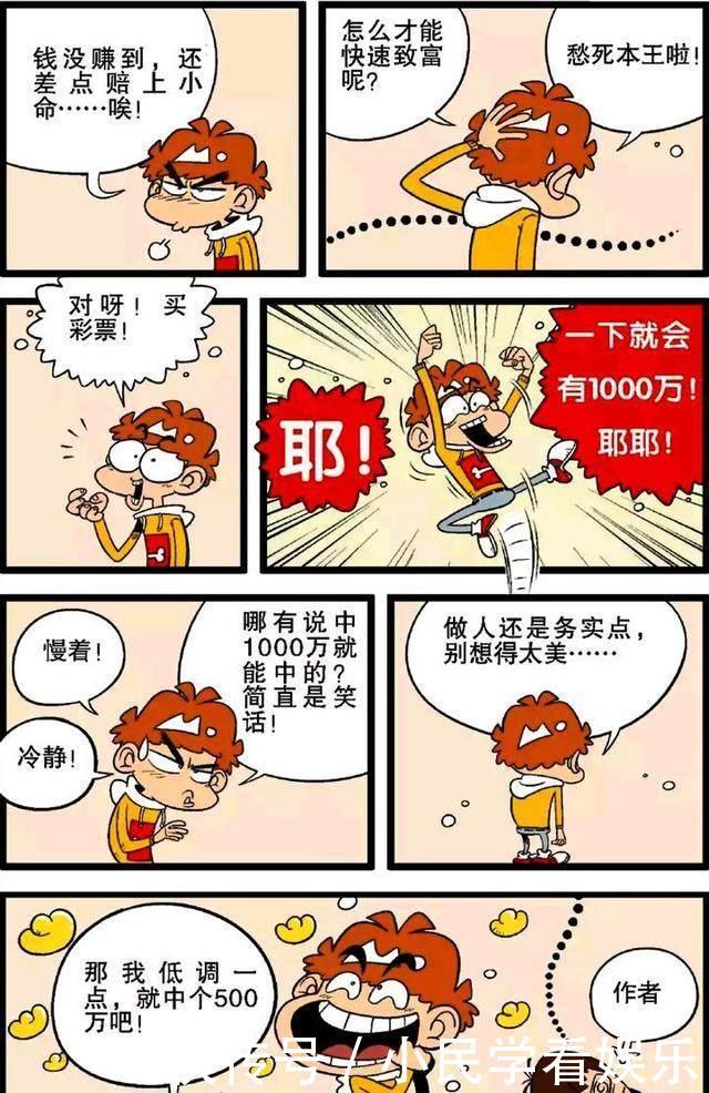 阿帅的小发明失败了。他没有挣到钱,几乎被自己的打屁股装置杀死。这一次,阿帅很担心如何赚钱。因此,阿帅认为买彩票是最快的赚钱方式。< p>
