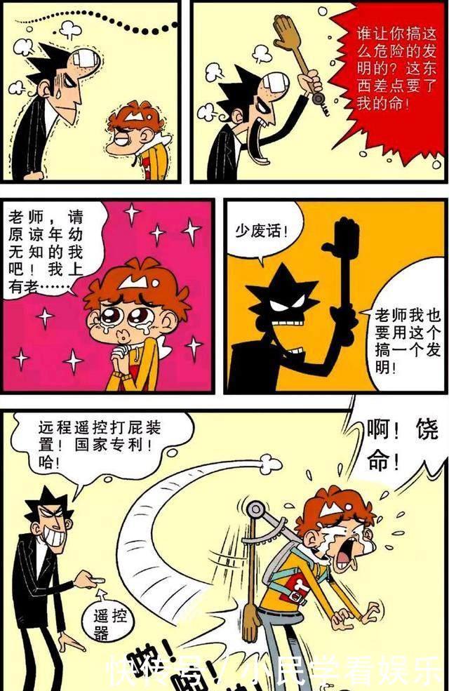 金老师拿着这个举手装置的手,找到了阿水。他问他发生了什么事,为什么他发明了一种隐藏武器来攻击他金老师认为阿帅喜欢发明,所以他让阿帅帮他发明一个用来打同学屁股的。