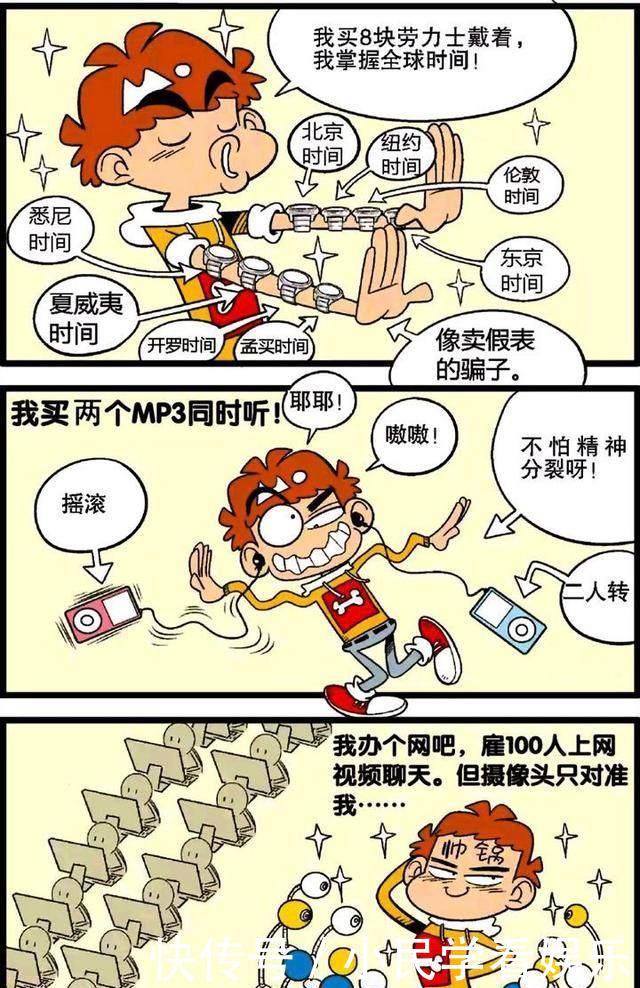 a帅自以为有500万元,买了8块最好的手表,这样他就能掌握世界时间,买两个mp3播放器,一只耳朵听一个,并雇100个人为他视频聊天。