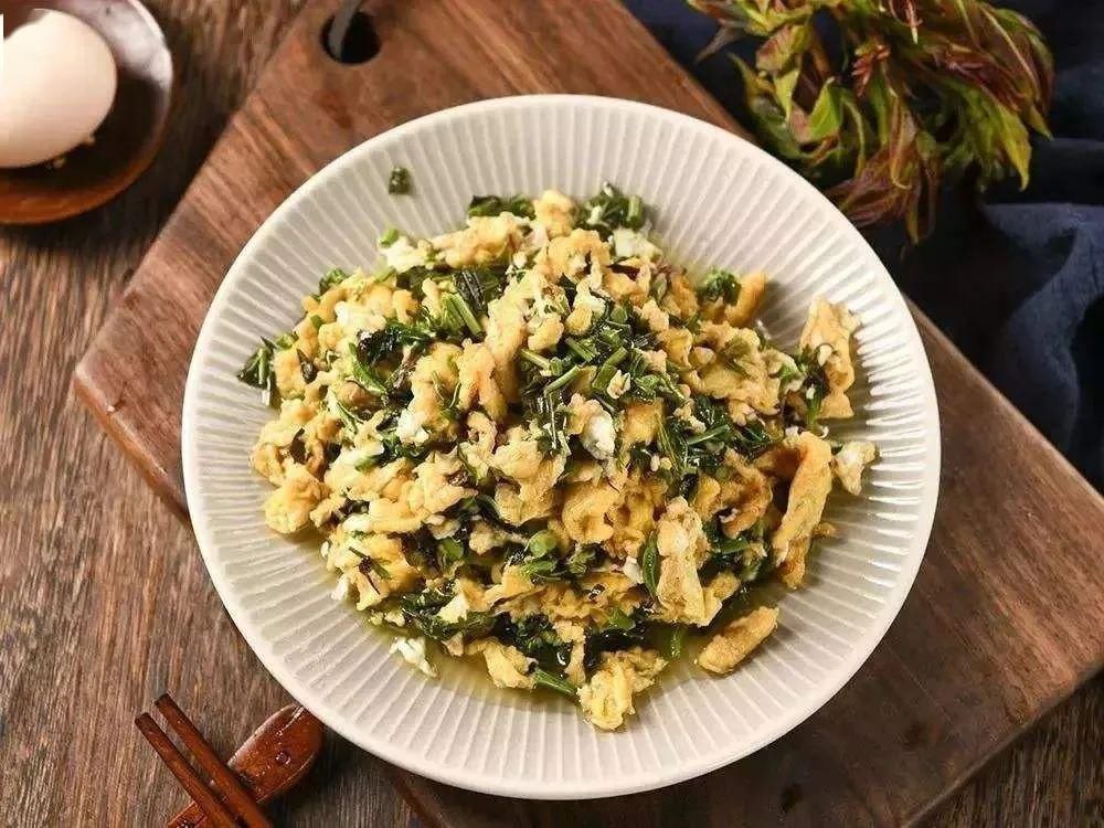 香椿可以说是野菜田里的榴莲喜欢香椿的人不能停下来。不喜欢香椿的人说它闻起来像梅雨中的霉菌。最经典的菜是香椿煎蛋。鸡蛋与香椿混合,在热油中煸制。它们充满了童年的味道和记忆。
