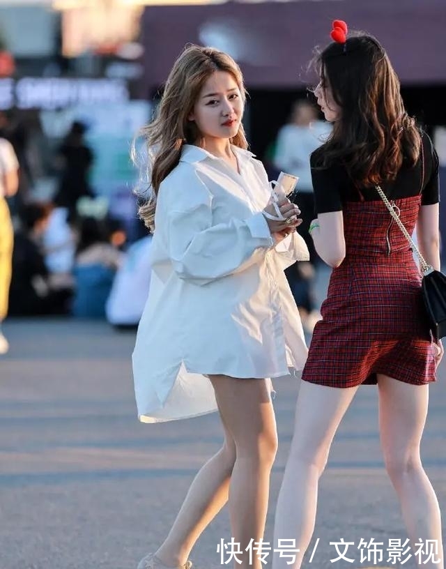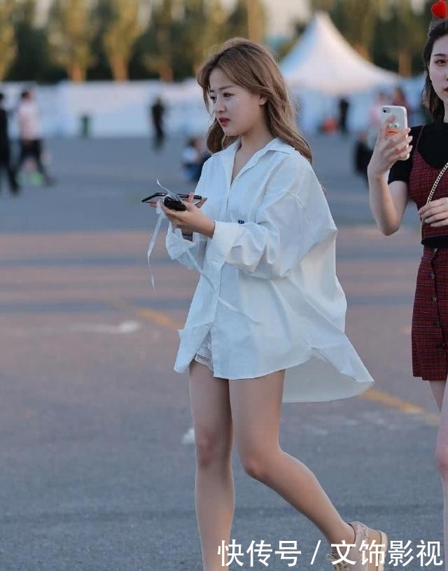 就像这个穿着宽松t恤的小妹妹,面料柔软,色调简单的白色。整件衣服给人一种非常轻松随意的感觉。在这一点上,它表现出一种有点漫不经心和懒散的样子。你知道,穿着职业服装的时尚女孩经常穿白色衬衫,这使得她的气质显得干练而有智慧,而小妹妹穿衬衫时却有一种随意的感觉。必须说,这里面有很多个人想法。