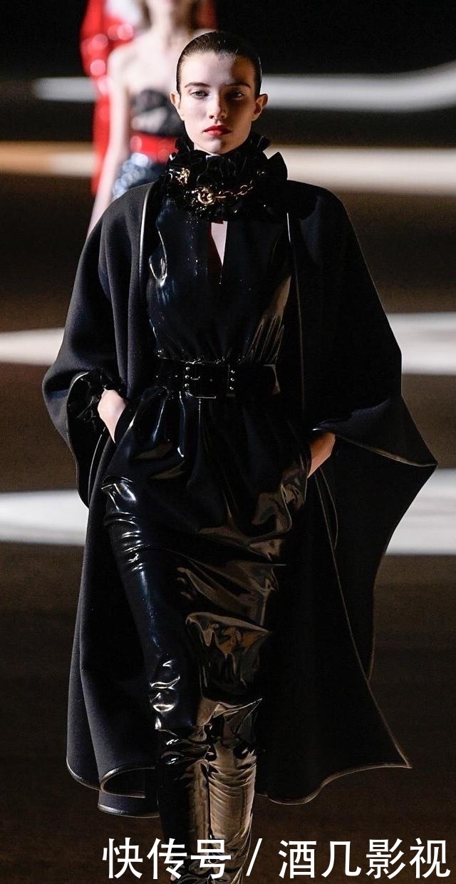 塑料外套可有背心、吊带、t恤等。安东尼·瓦卡罗的圣劳伦2020秋冬2020系列由一系列塑料漆皮制成。下面的吊带非常抢眼,呈现出完美的肩-颈曲线,露出的锁骨更性感。它非常前卫,配有白色七分裤和乳胶靴,非常时尚。