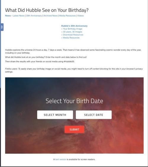 哈勃在他生日那天看到了什么?请在下面输入月份和日期进行查找!