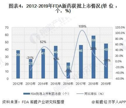 根据美国食品和药物管理局发布的数据,在2010-2019年期间,美国食品和药物管理局批准了378种新药上市,平均每年批准37种新药2019年,美国食品和药物管理局共批准了48种新药上市,其中37种为化学小分子创新药物(NME),占77.1%