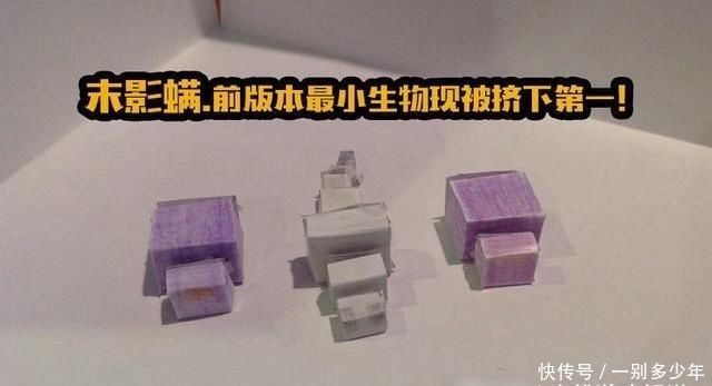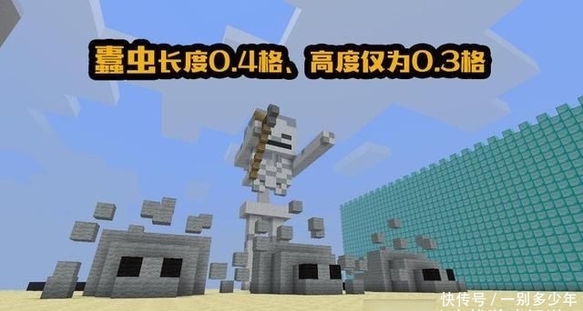 中的第二名“蜘蛛螨”在上一个版本中被认为是整个游戏中最小的生物!如果甲虫被放在灵魂沙上,它们有机会逃脱,但是由于它们的身材非常矮小,它们无法逃脱,将会被卡在灵魂沙上,直接窒息而死。从图中还可以看出,两者的高度都是0.3格,但螨虫的长度要小0.1格,银鱼显然看起来更长。但是,现在最小的生物不是它,而是新版本中的生物,所以蜘蛛螨现在只能排名第二!