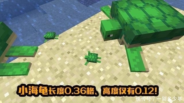 号没有错。现在游戏中最小的生物是这个——海洋版中新加入的水生生物“海龟”!小海龟的高度只有0.12格,它的长度只有0.36格,这被称为短小!甚至它们的成年海龟也只有0.4平方高和1.2平方长。在整个游戏中,它现在是名副其实的最小的生物,而不是它们中的一个!在大乌龟旁边,小乌龟真的像一只蚂蚁,让人不由自主地想到一只脚可以踩死几十只乌龟,小乌龟是一个大开眼界的