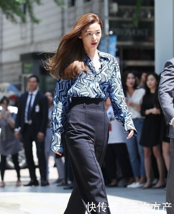 在韩国,这里盛产美女,全智贤可以说是一个知名度很高的女明星。自从她出道以来,多年来她贡献了许多优秀的电影,她的美貌价值多年来一直保持稳定。现在38岁了,不仅她的美貌价值没有下降,而且她越来越像一个女神。在女演员中是一个罕见的高身材,173.5的身高堪比超级名模,着装风格更加高级全智贤参加了这次活动。一件简单的高腰宽腿的蓝色印花衬衫非常漂亮。